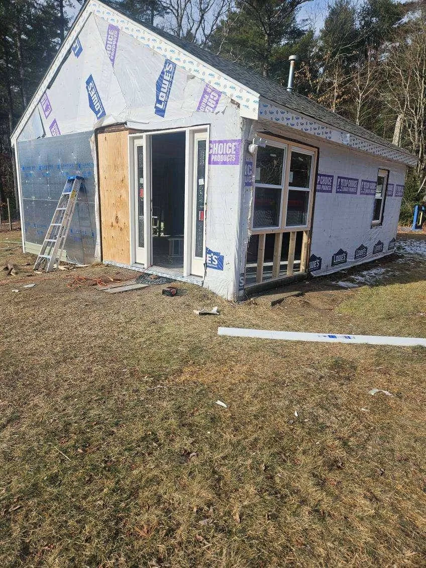 New ADU installation where we installed CertainTeed vinyl siding with weathered wood CertainTeed Roof. We also installed ThermaTru door and Harvey windows to complete the look.
